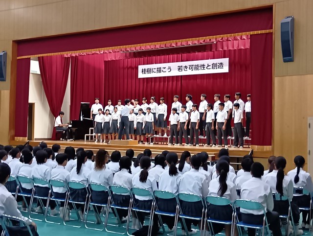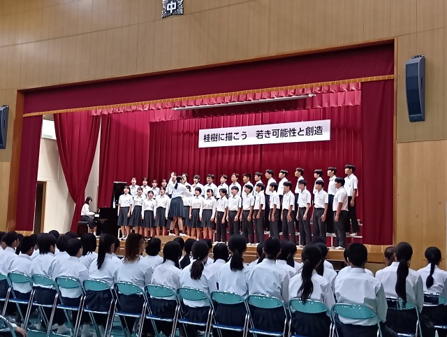 午後は、先日の合唱コンクールで各学年金賞を受賞したクラスの発表がありました。学年の代表として堂々とした歌声を披露してくれました。