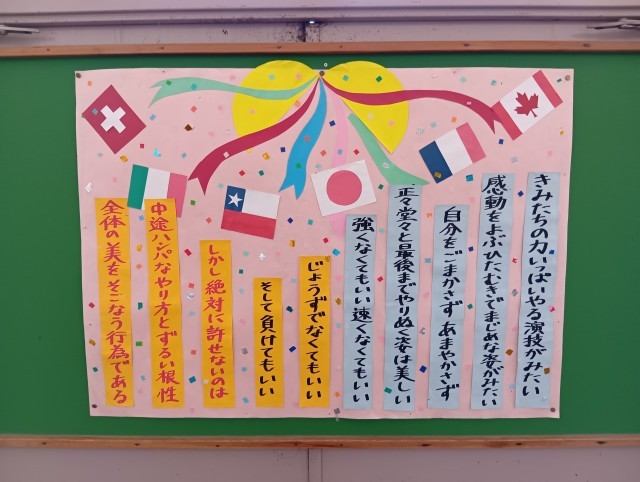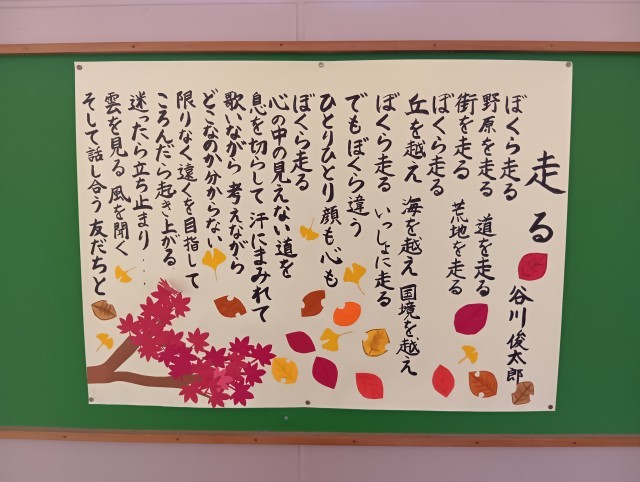 中央階段の掲示物です。合唱コンクール・文化祭が終わり体育大会に向けての掲示物にかわっていました。