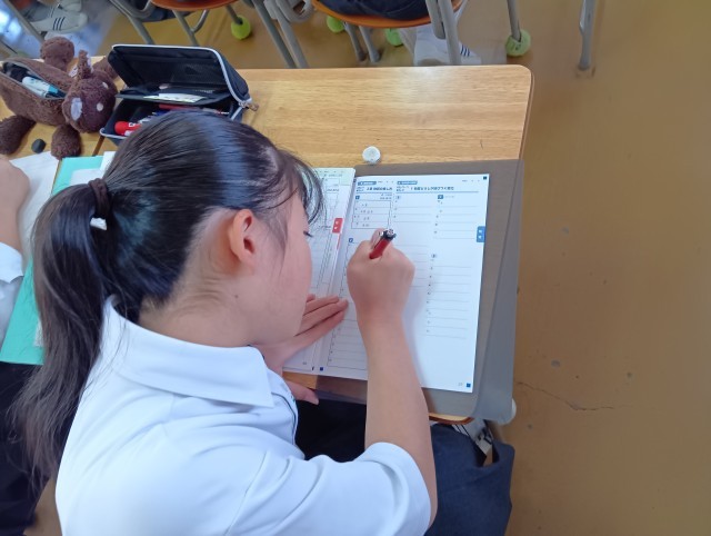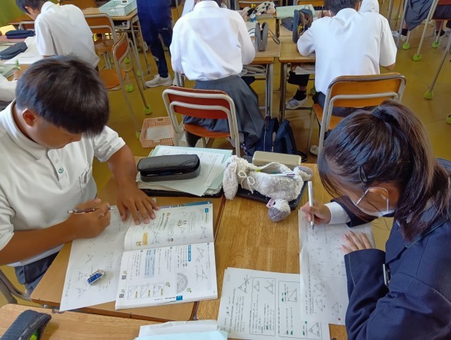 理科・英語・社会・数学・体育です。体育は、男子ティーボール・女子はバレーをしていました。