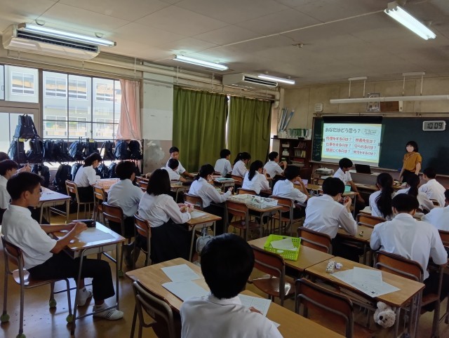 2年生は、ジェンダー学習の2回目になります。ジェンダーギャップ指数の話から、みんながよりよく過ごすにはどうすればいいのかなどをしっかり考えていました。