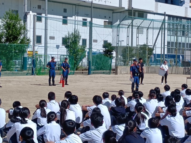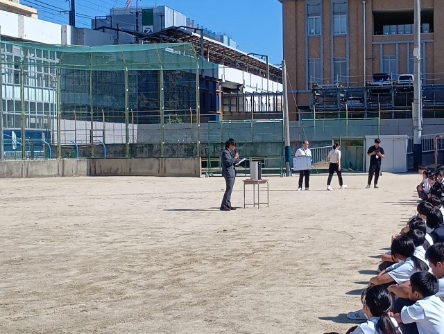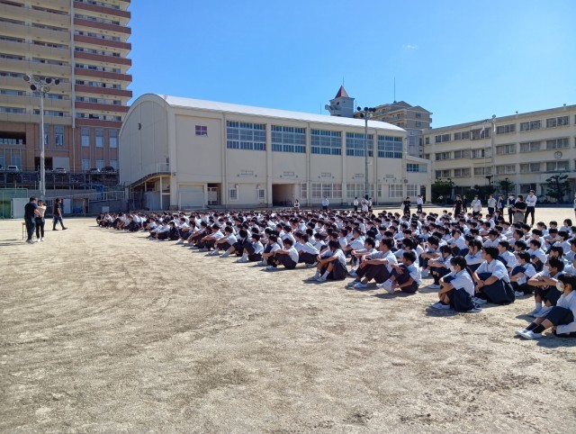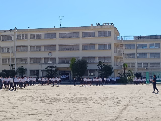 今日は、中間テストが終わったあと、避難訓練を行いました。
