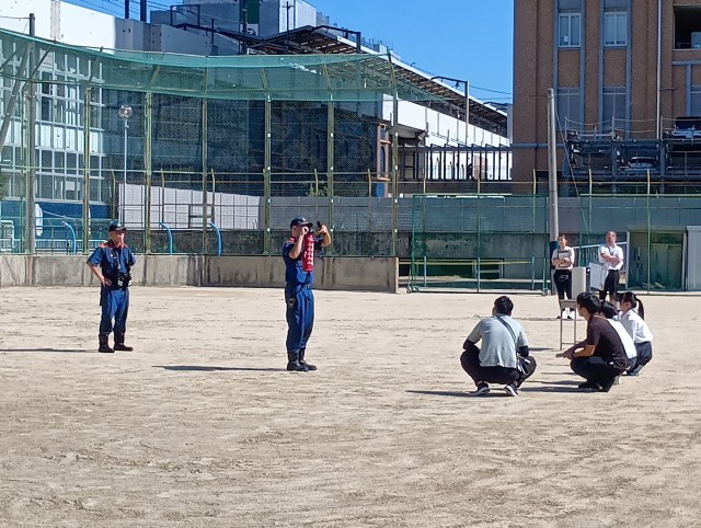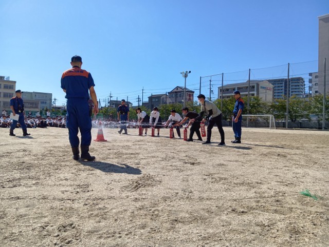 消防署の隊員の方からのお話のあと、消火体験を行いました。素早い行動でした。