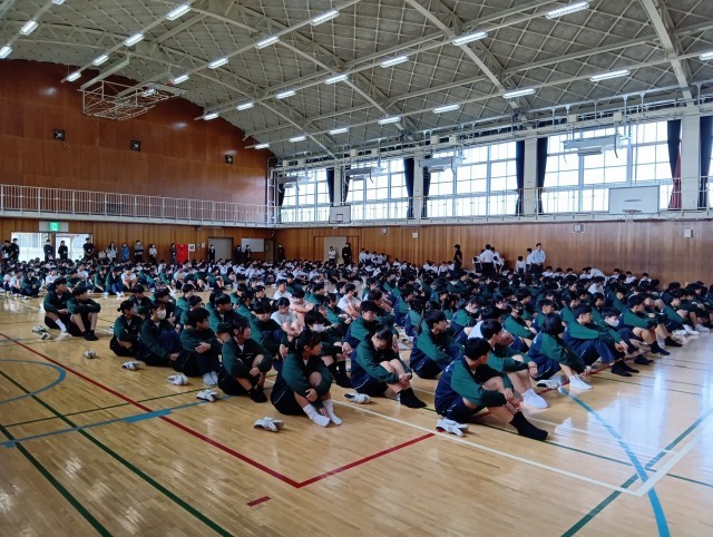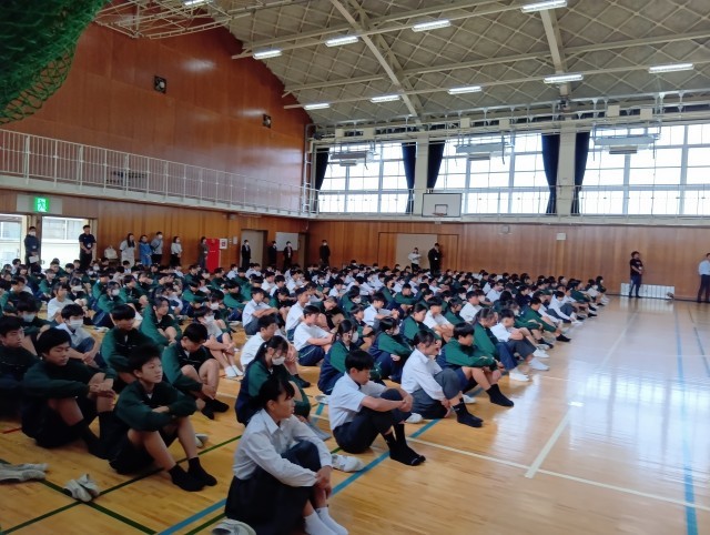 全校朝礼が行われました。校長先生から合唱コンクール・文化祭、そして体育大会に向けての話がありました。