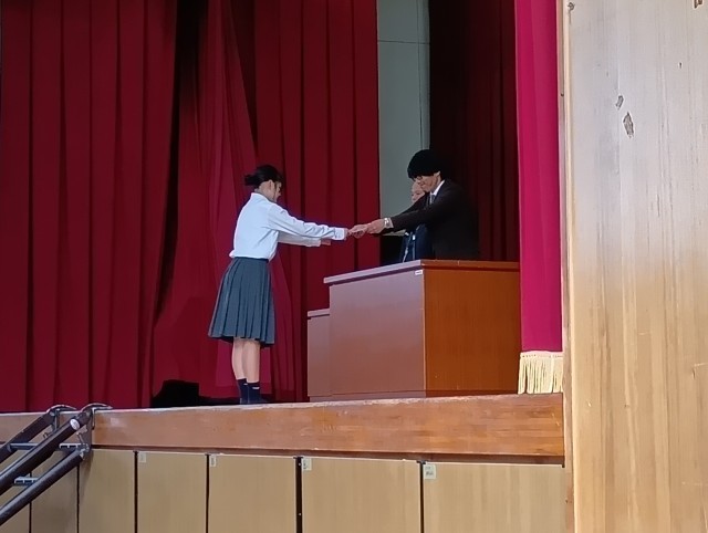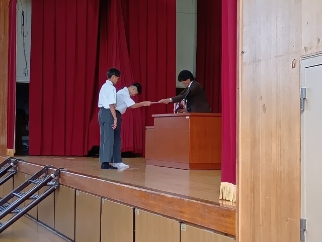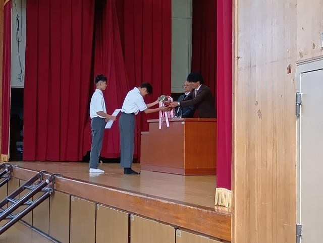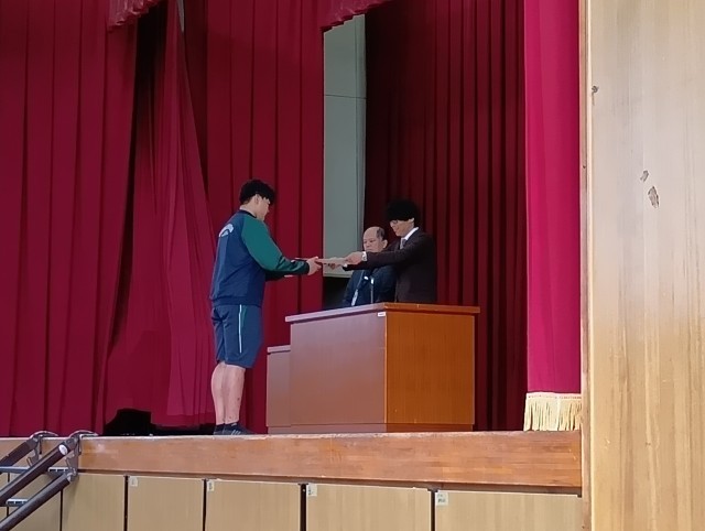 伝達表彰では、相撲部・男子、女子バスケットボール部の表彰が行われました。