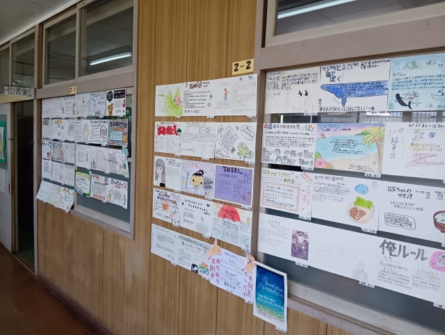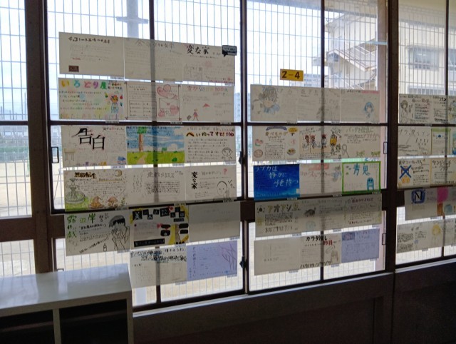 2年生の国語の文化祭展示だった、本のPOPが図書室前に掲示されています。図書室にある本ばかりなので、POPを見てぜひ借りてみてください。