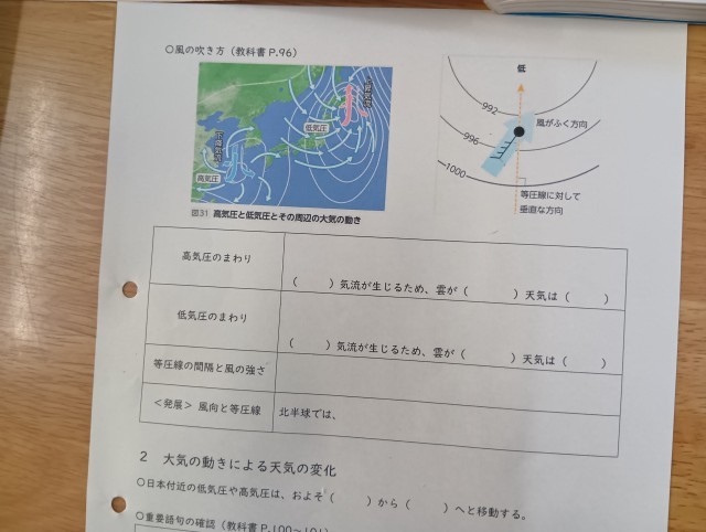 国語B・理科B・数学・理科A・社会です。理科Aでは、風の吹き方についての学習をしていました。