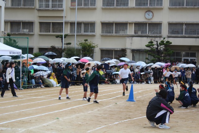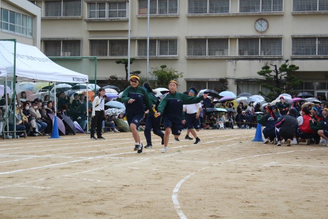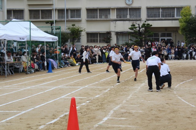 1年生学年種目 全員リレーです。全員がバトンと仲間を思いをつないでいました。