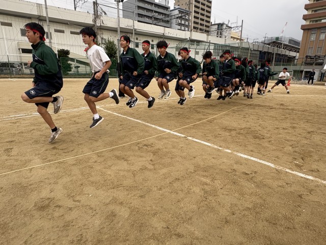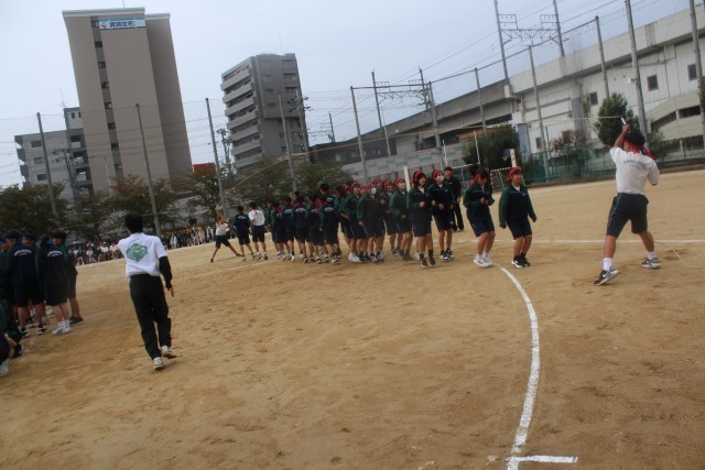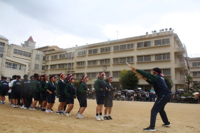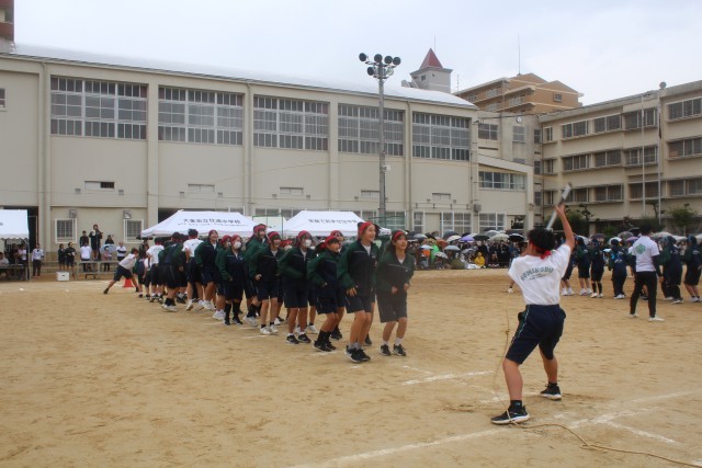 順番が前後しました。生徒会種目の「大繩跳び」です。昼休み・グラウンド開放で何回も練習をして、またクラスで何度も話し合いをして当日を迎えました。2年生が33回で総合1位を獲得しました。