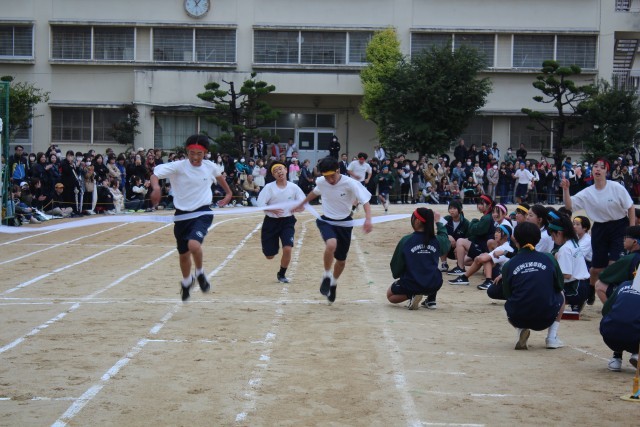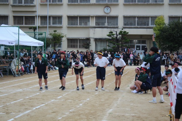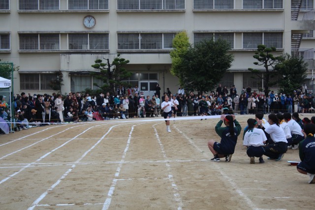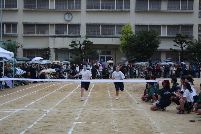 200m走です。種目の後半に差し掛かって疲れが出てきたところですが、一生懸命トラックを1周走っていました。