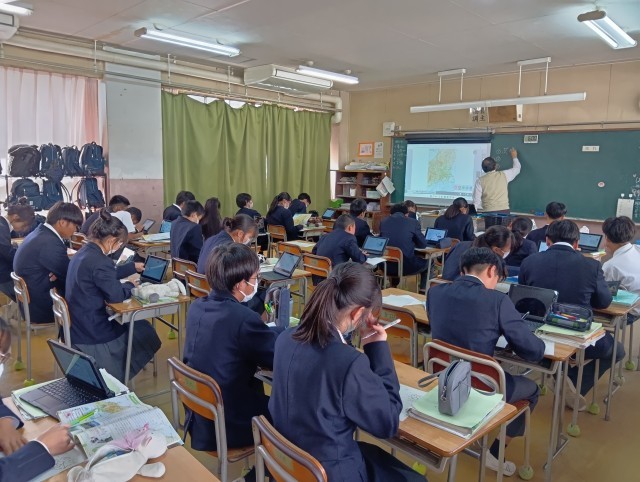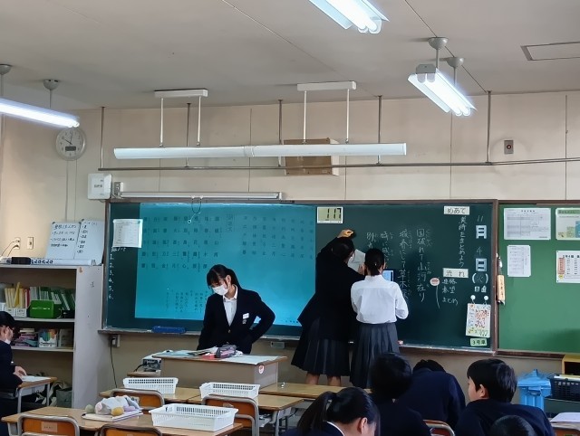 体育・理科B・社会・国語B・国語Aです。国語Aでは、漢詩の説明を生徒が調べたことを授業していました。