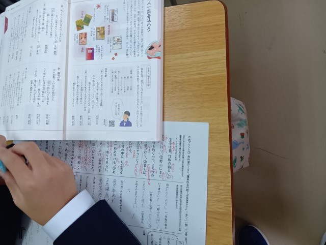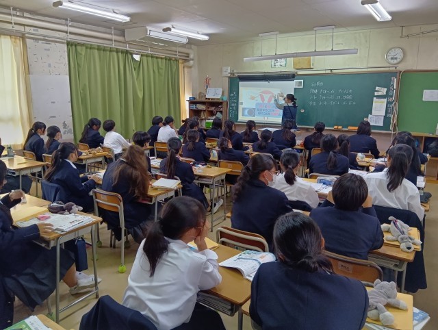 体育・国語です。男子の体育では、バレーをしていました。女子は保健の授業をしていました。
