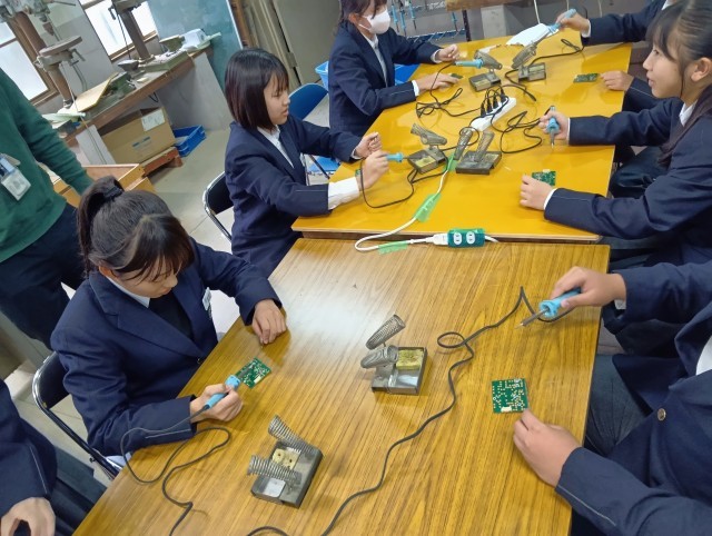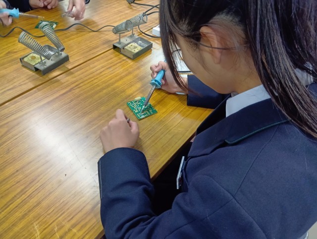 国語A・理科A・数学・社会・英語B・技術です。技術では、はんだづけをしていました。細かい作業ですが頑張っていました。