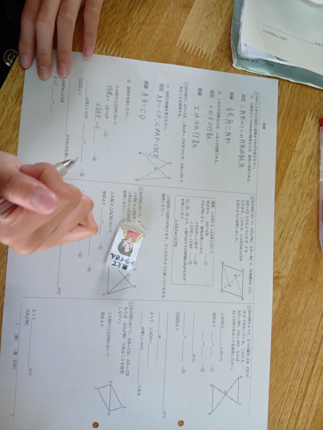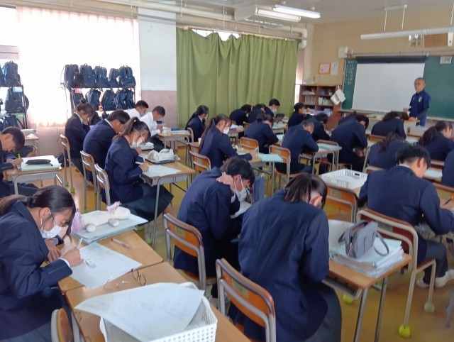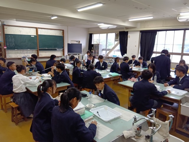 数学・英語A・英語B・社会・理科Aです。理科Aでは、塩酸を使った実験をしていました。