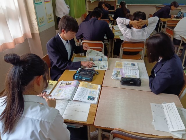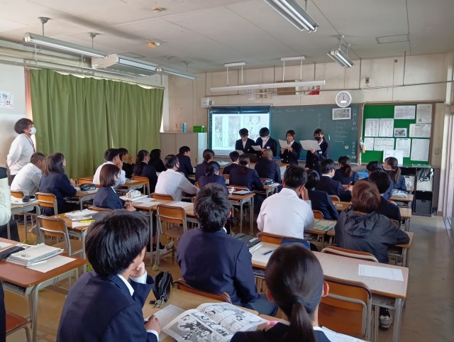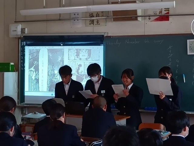 体育・英語・社会です。英語では、漫画を使用して、各グループが英語で発表していました。