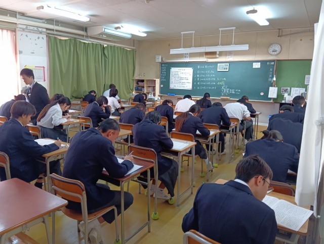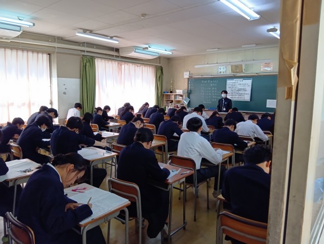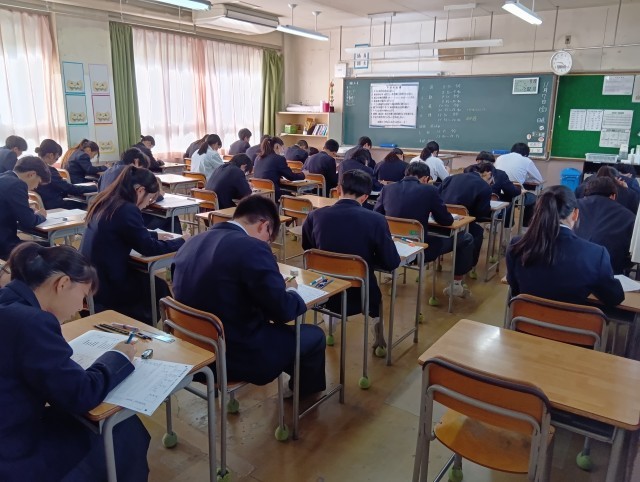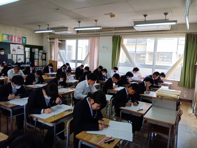3年生は実力テストです。4回目の重要なテストになります。いつも通り一生懸命最後まで頑張っていました。