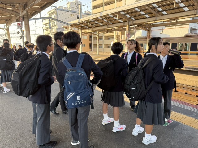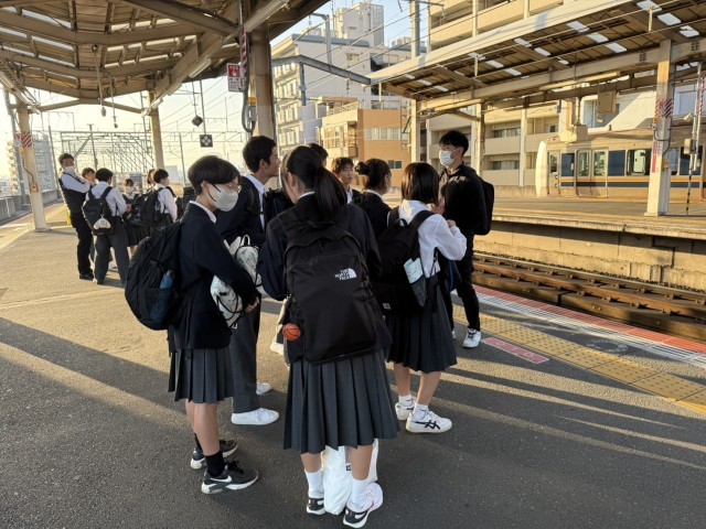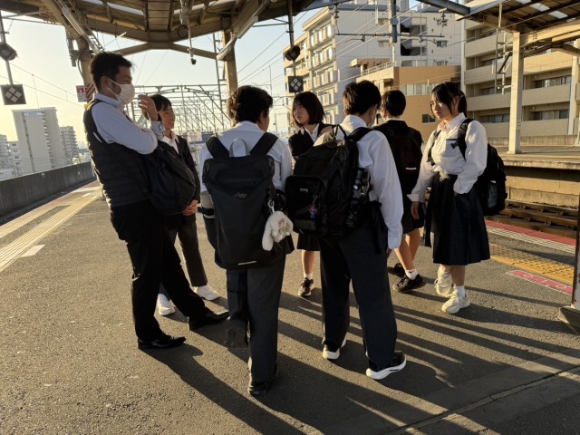 1年生(79期生)の拡大班長会メンバーが、放課後に守口さつき学園夜間学級に訪問します。電車に乗って、さつき学園に向かいます。
