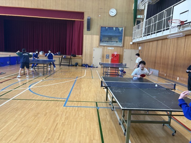 バレー部と卓球部です。バレー部は練習試合をしていました。