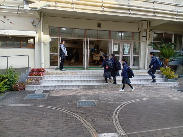 今日は朝から冷え込んでいました。数名の先生が挨拶運動に立ってくれていました。