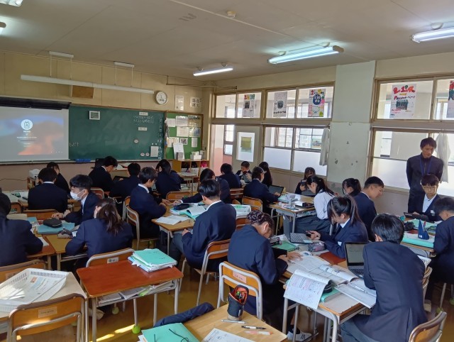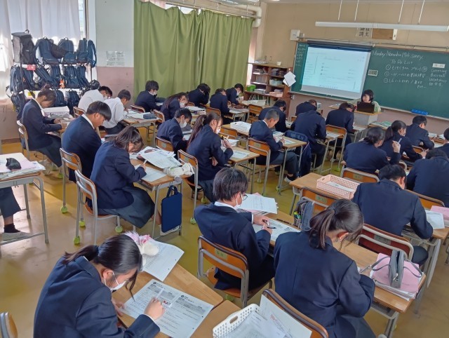 国語B・英語A・理科Aです。国語Bでは、助動詞の確認問題に取り組んでいました。(4.5組写真撮りに行けなくてすみません・・・。)
