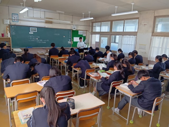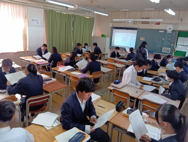 音楽・英語・国語・社会です。国語では、「おくのほそ道」の原文を音読していました。