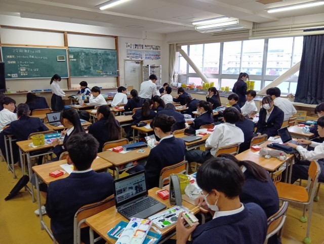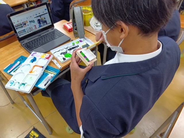 英語・社会・美術です。美術では、ていねいに作品を作っていました。