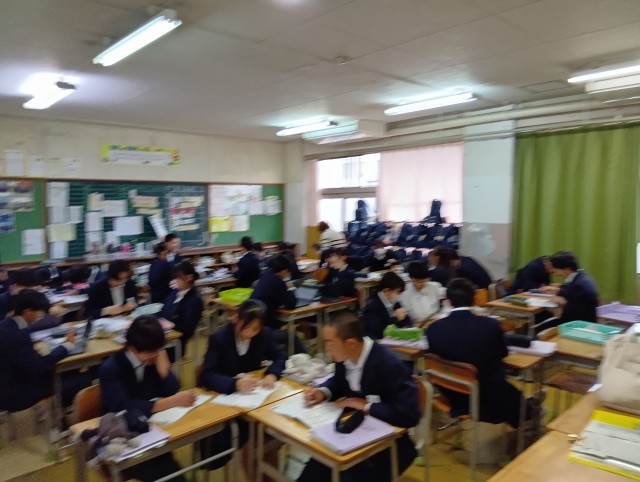 国語B・理科B・家庭科・数学・理科Aです。どのクラスも課題に一生懸命取り組んでいました。