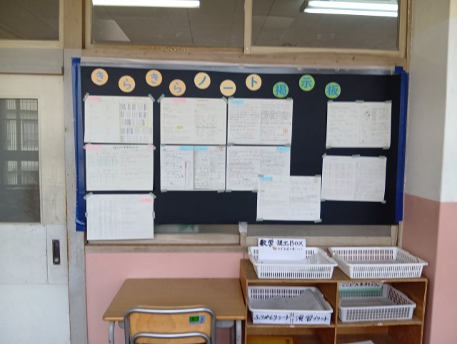 1年生の学年職員室前です。きらきらノートの頑張りが掲示されていました。