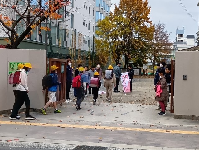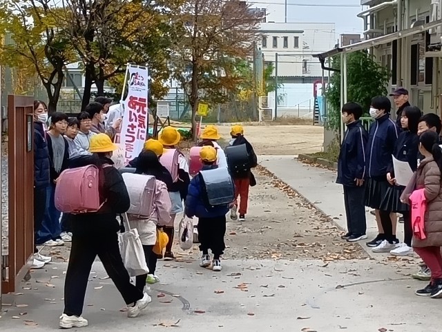 生徒会役員が、住道南小学校に行って、合同挨拶運動をしていました。