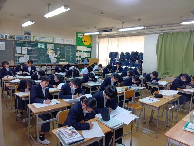 音楽・理科A・数学・英語A・美術です。音楽では、ジングルベルをリコーダーで練習していました。