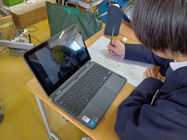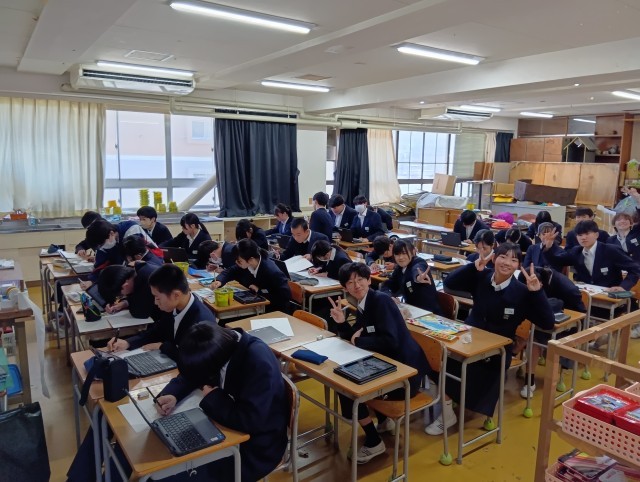 理科・音楽・美術・英語です。美術の作品づくりは、本当にクオリティの高い作品が数多くありました。いい雰囲気で頑張っています。