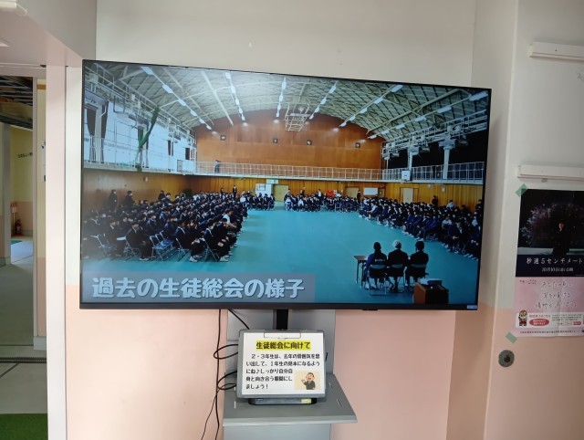 首席の私が作った動画を流しています。来週の生徒総会に向けての空気づくりの一環になればと思っています。