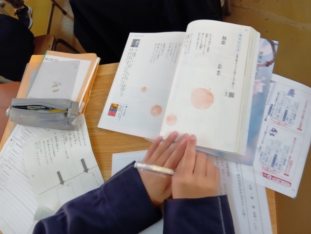 国語・社会・理科・数学です。国語では、詩のイメージを考えていました。