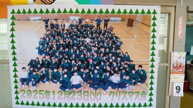 2年生のフロアです。2学期のクリスマス会の写真が掲示されていました。またQubena企画がリニューアルされて進行中です。