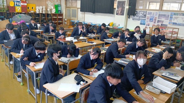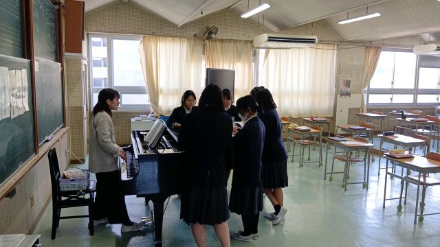 英語・美術・理科・音楽です。音楽では、卒業式で歌う「旅立ちの日に」の練習をしていました。