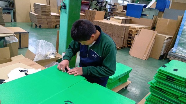職場体験2日目です。昨日の緊張した表情とは少し違い、いい表情で取り組んでいました。