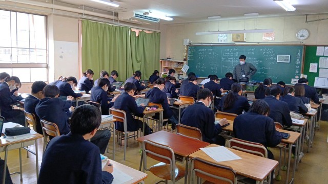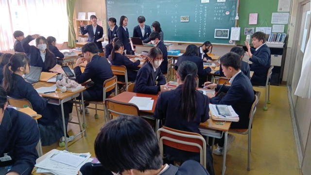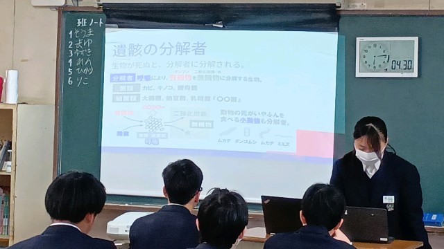 社会・理科・国語・数学です。理科では、レポートの発表を行っていました。