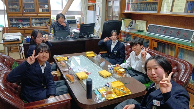 今日の給食の時間は、生徒会役員と校長先生とのランチミーティングをしました。活発な意見交流ができていました。