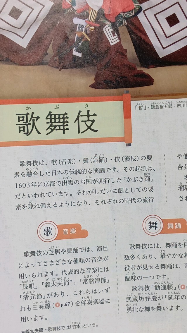 美術・理科A・社会・英語A・音楽です。音楽では歌舞伎について学習していました。