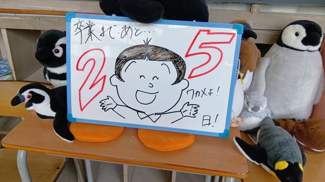 3年生学年職員室前です。カウントダウンが進んでいます。