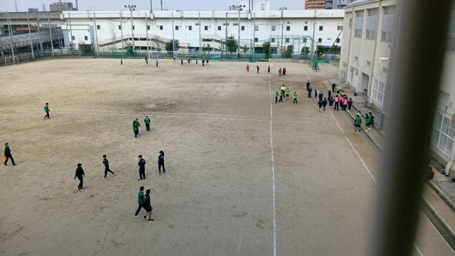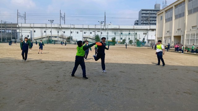 体育・英語・社会の様子です。体育では、アルティメットをしていました。