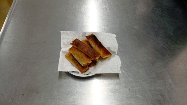 香ばしい、いい香りが校内に漂っていました。1年生が上手に春巻きを作っていました。