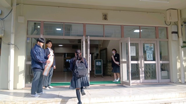 朝から、次期生徒会役員選挙の立候補者があいさつ運動をしていました。