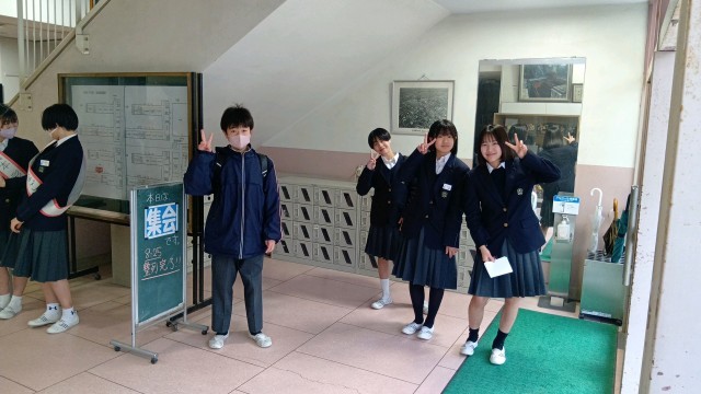 今日の朝も、立候補者があいさつ運動をしていました。現生徒会役員もあいさつ運動をしていました。