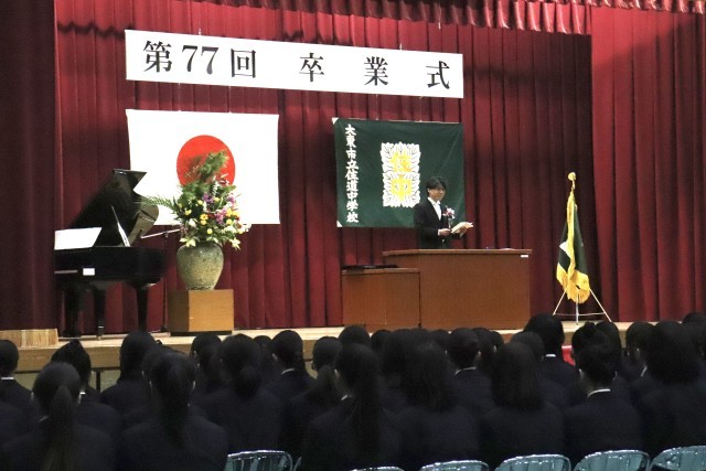学校長式辞・逢坂伸子大東市長・教育委員会からの祝辞をいただきました。