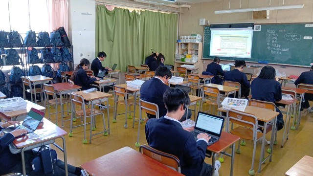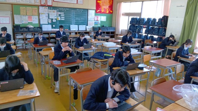 2年生は、来月の全国学力テストに向けた、英語の話すことテストの事前確認をしていました。