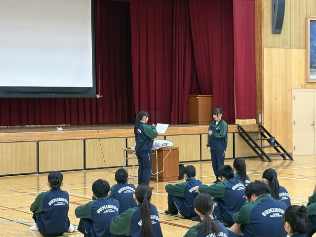 学級委員会から学年の振り返りや委員会企画の表彰、振り返り動画の上映、学年の先生方から一言ずつのお話がありました。