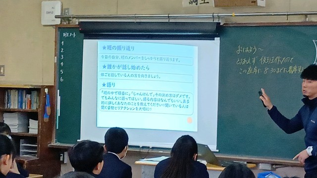 1年生は、学校オリエンテーリングをしていました。2年生は、学校生活の話を各クラスでしていました。3年生は、発育測定のあと学年集会をしていました。それぞれの学年で、1年間の土台づくりが行われていました。