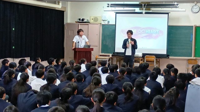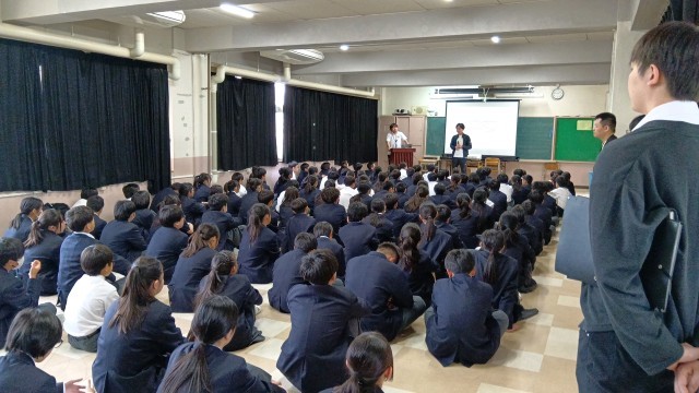5時間目、1年生は多目的室にて学年集会を行っていました。