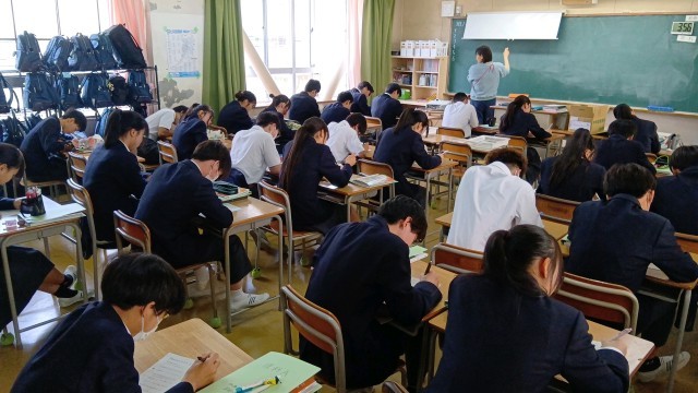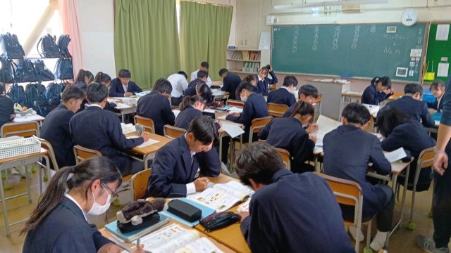 数学A・技術・理科A・社会B・家庭科です。理科Aでは、復習の確認テストをしていました。