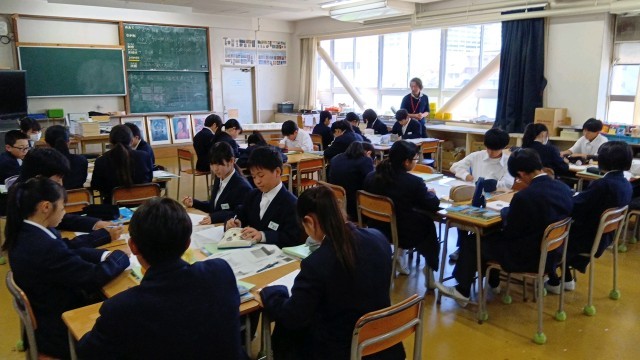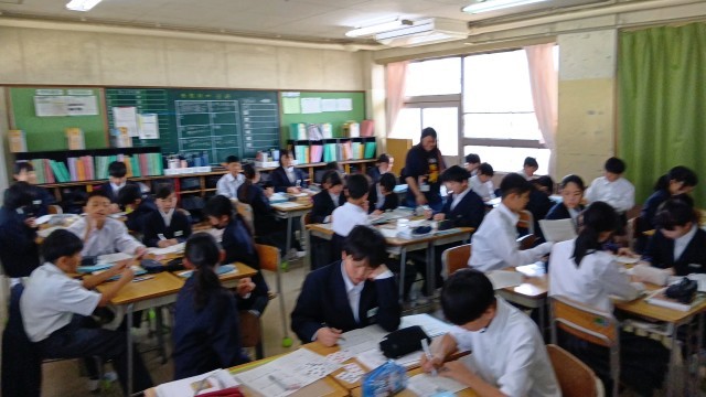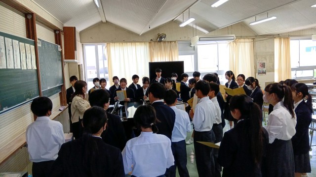 音楽・美術・数学・国語です。音楽では、校歌の練習をしていました。